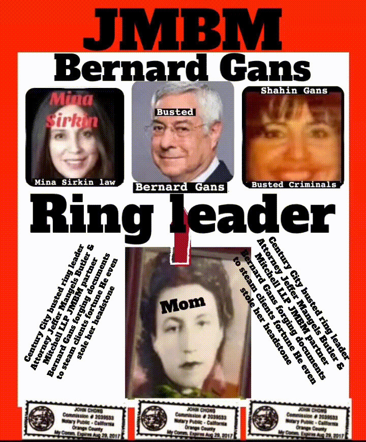 California Business Lawyers Jeffer Mangels Butler & Mitchell LLP partner Bernard gans engaging in criminal acts forging illegal documents.